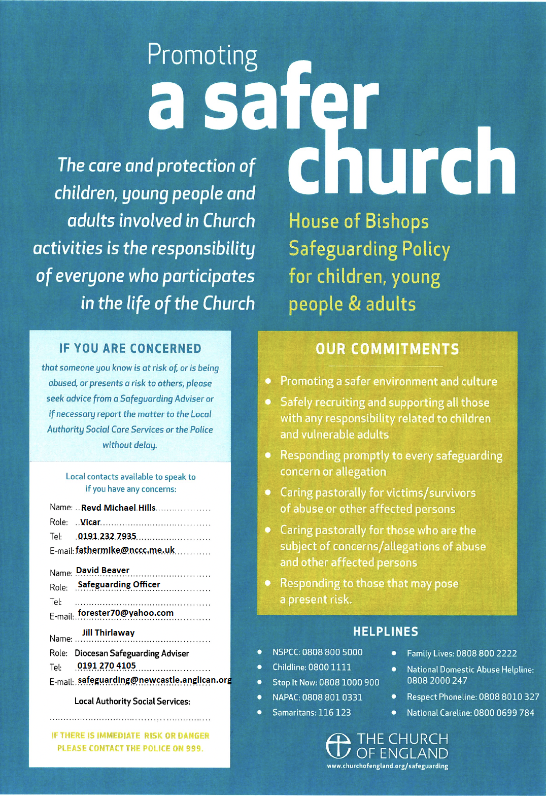 In accordance with the Church of England Safeguarding Policy, St Andrews’ is committed to: